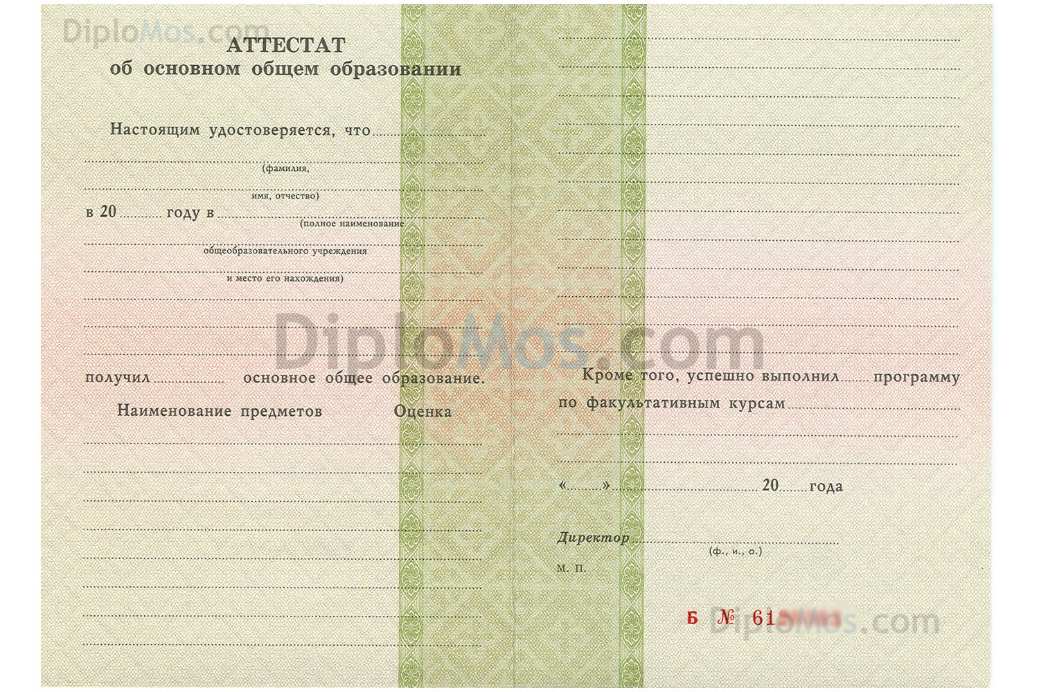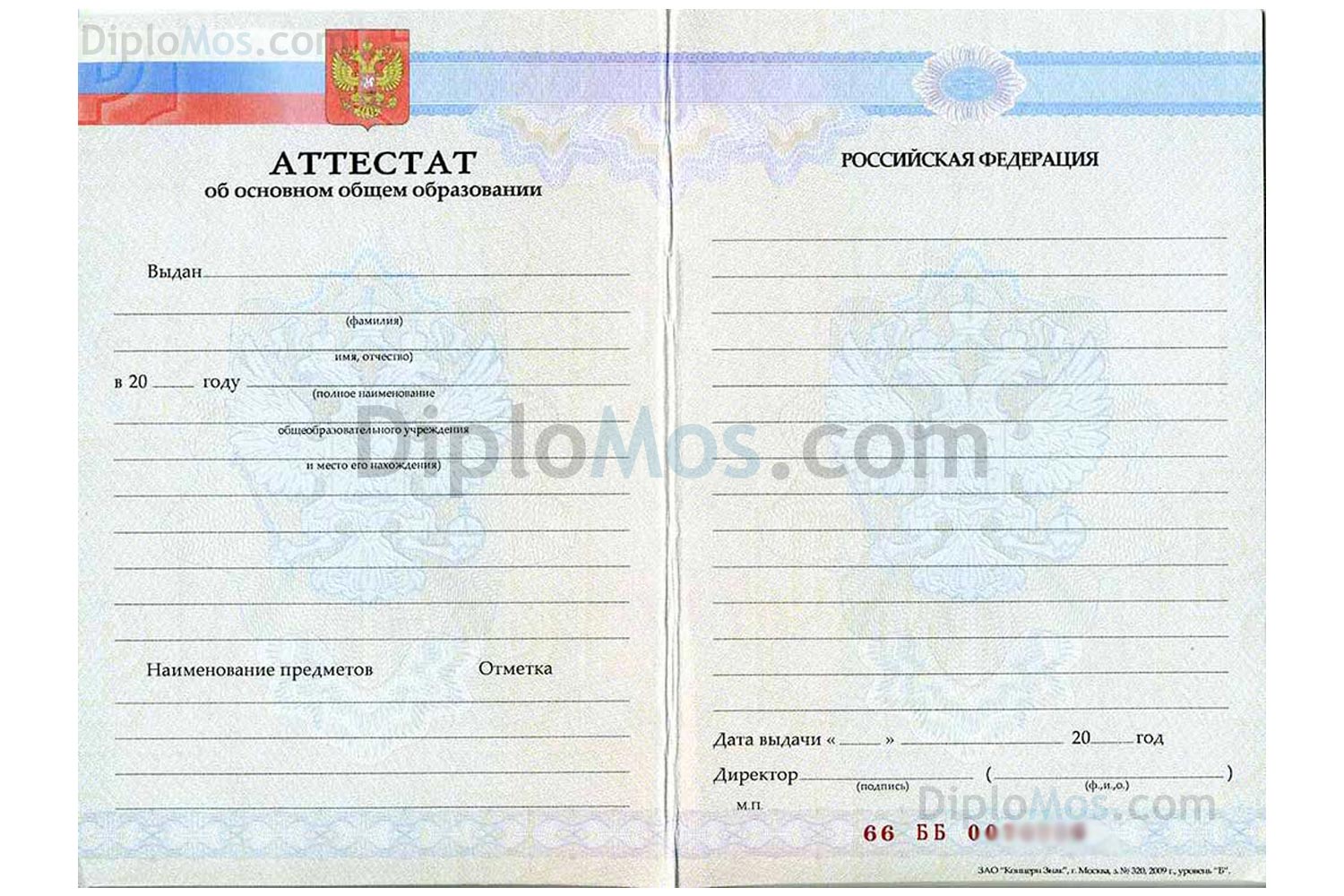 Аттестат за 9 класс 2014-2025. Полный комплект, аттестат в наличии. Гознак |